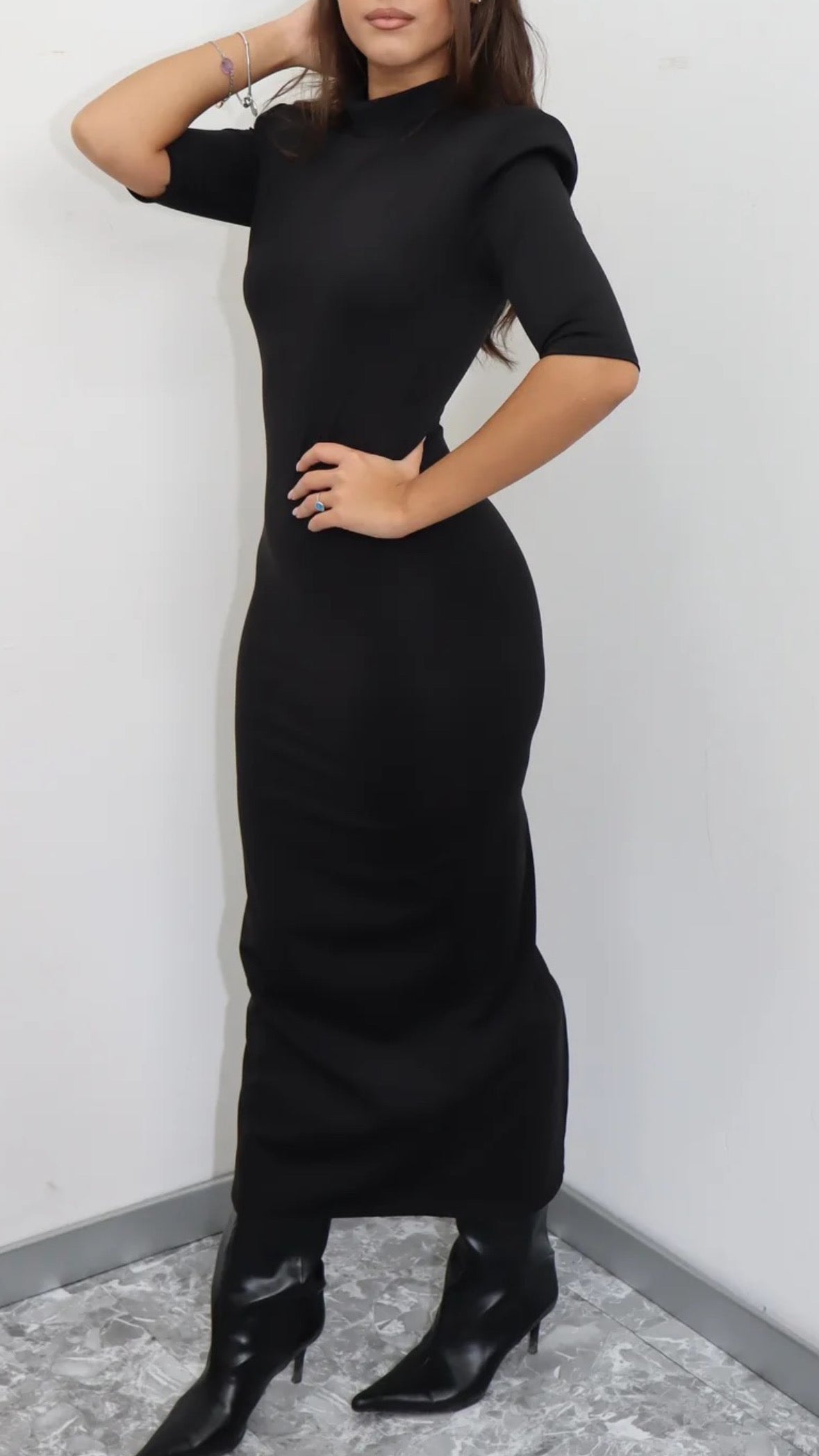 Vestito in lycra nero con spalline , taglia unica. La modella é alta 1,65 cm circa, ed é una taglia S/M.